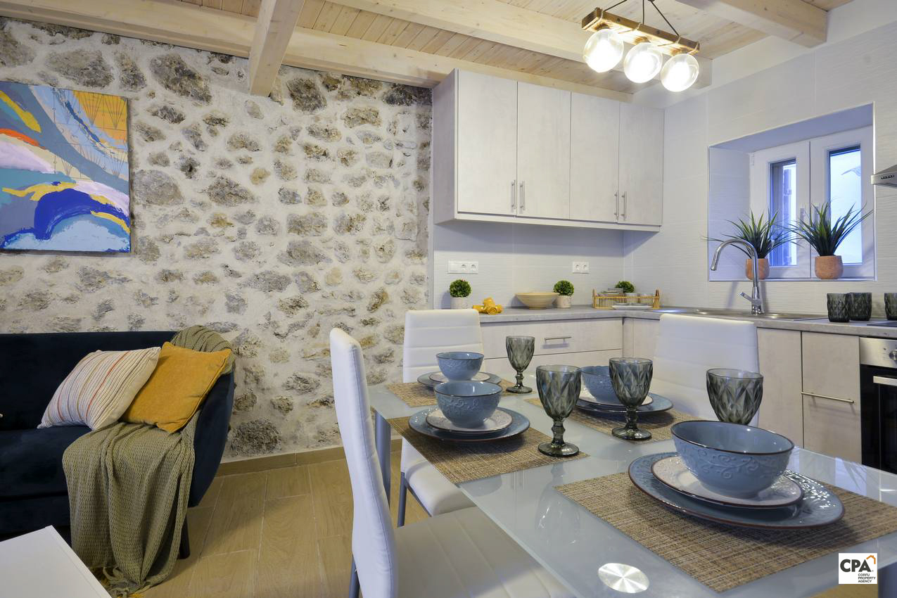 The house is located in the traditional village of Synarades and has been beautifully renovated providing two bedrooms, a double and a single.