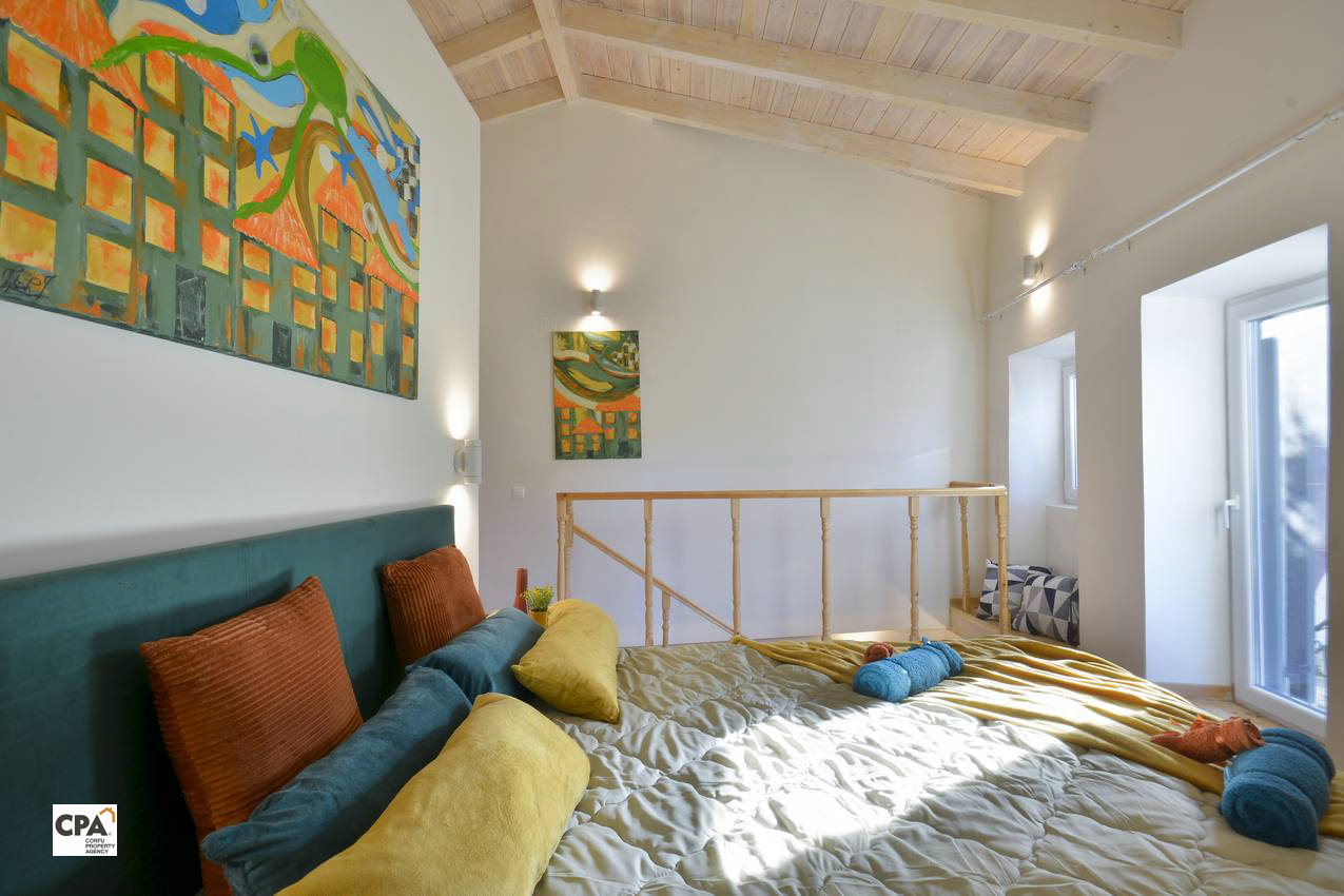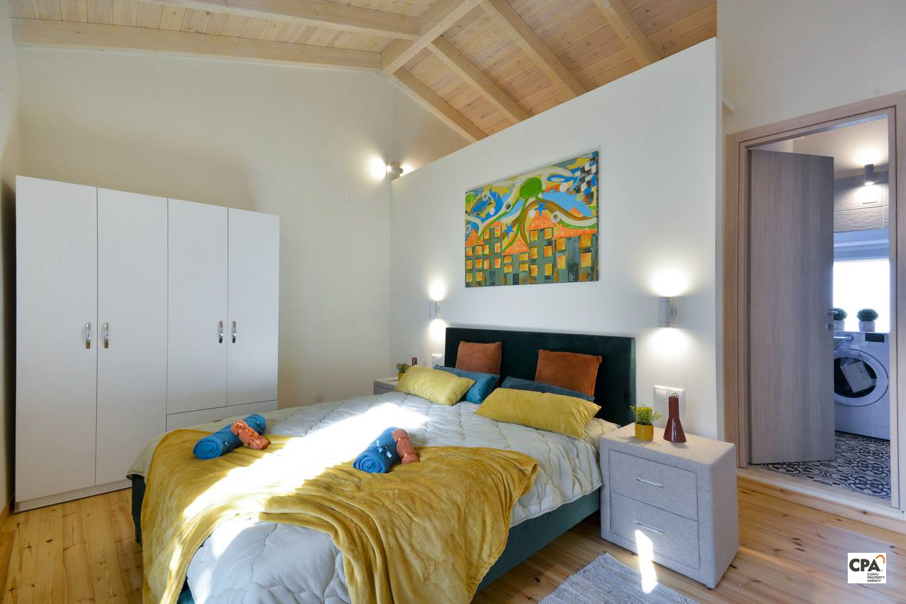 The wooden roofing and floors in natural colors give charm to the rooms on this level.