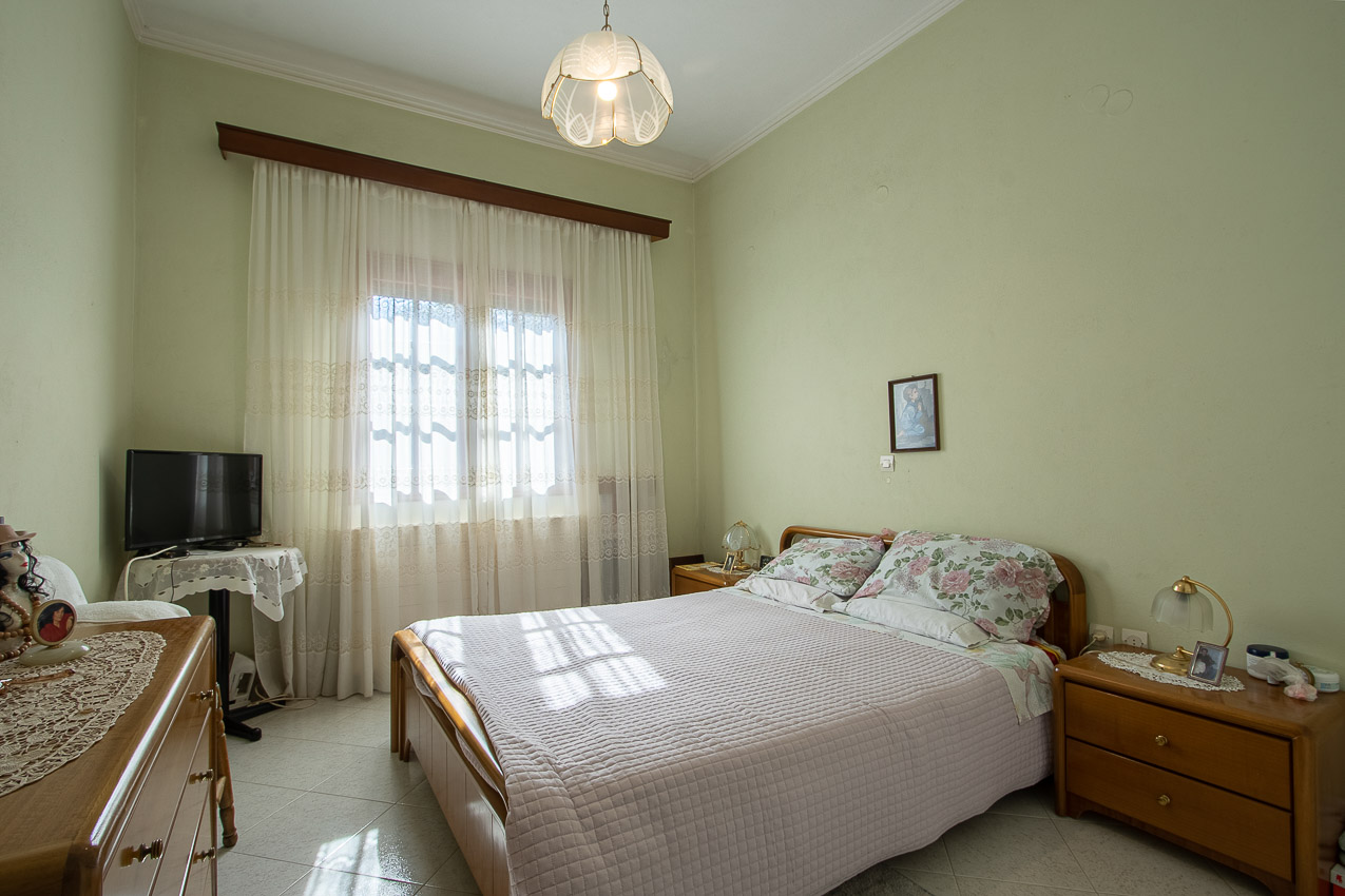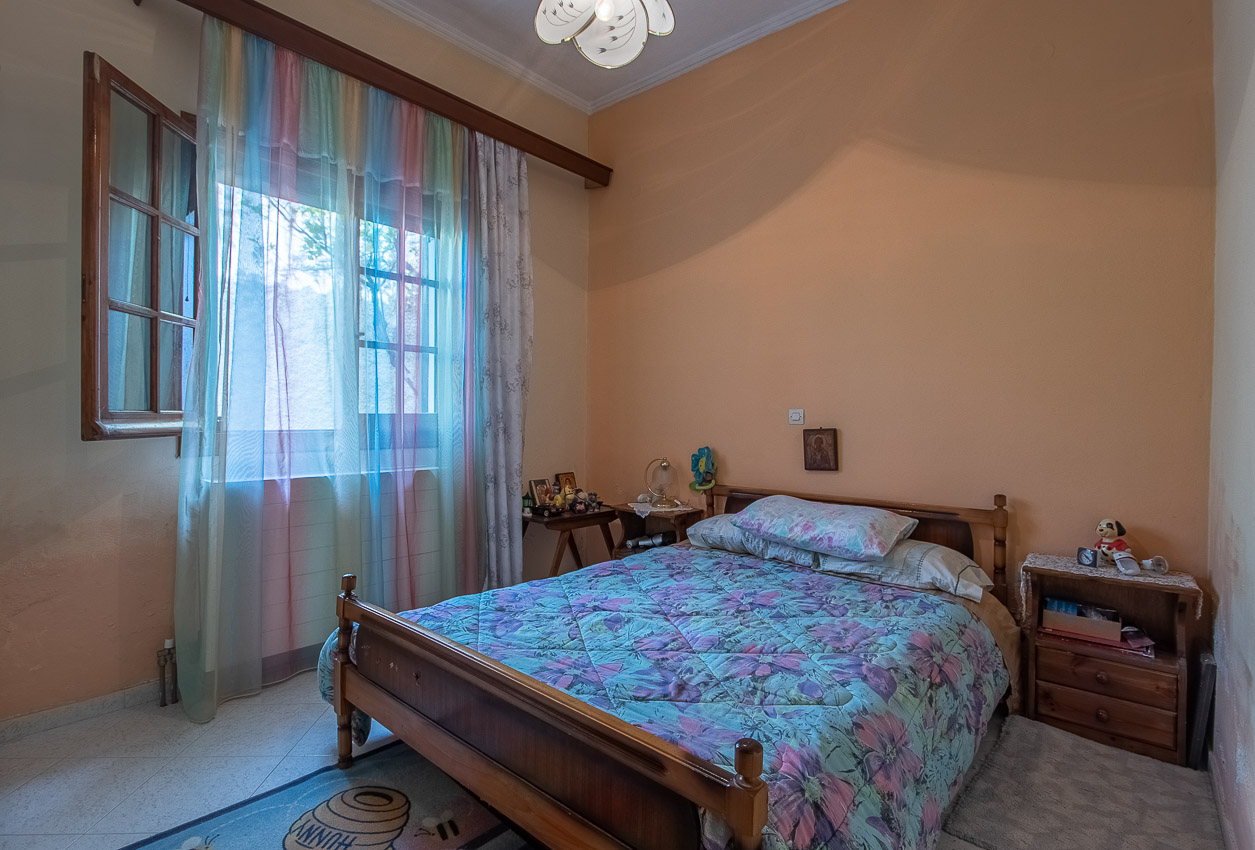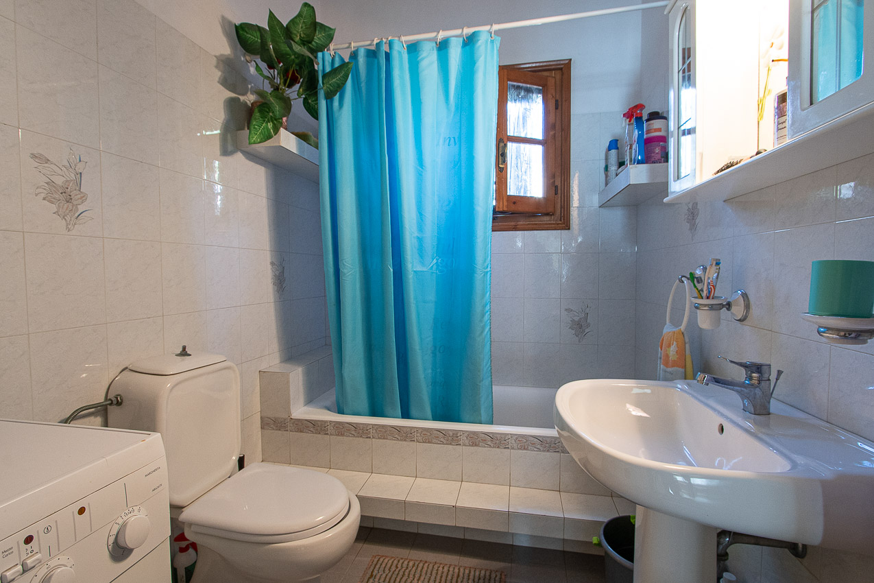 Set on a 1,000 m² plot, the house offers 95 m² of well-maintained living space. The interior comprises three comfortable bedrooms, a bathroom with bathtub, and a bright open-plan kitchen, living, and dining area featuring a fireplace that adds warmth and character. Wooden windows and shutters further enhance the home’s traditional appeal.