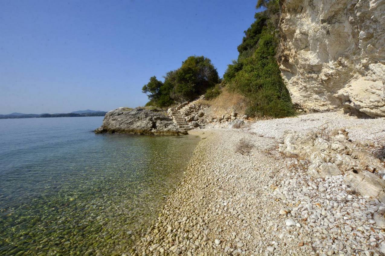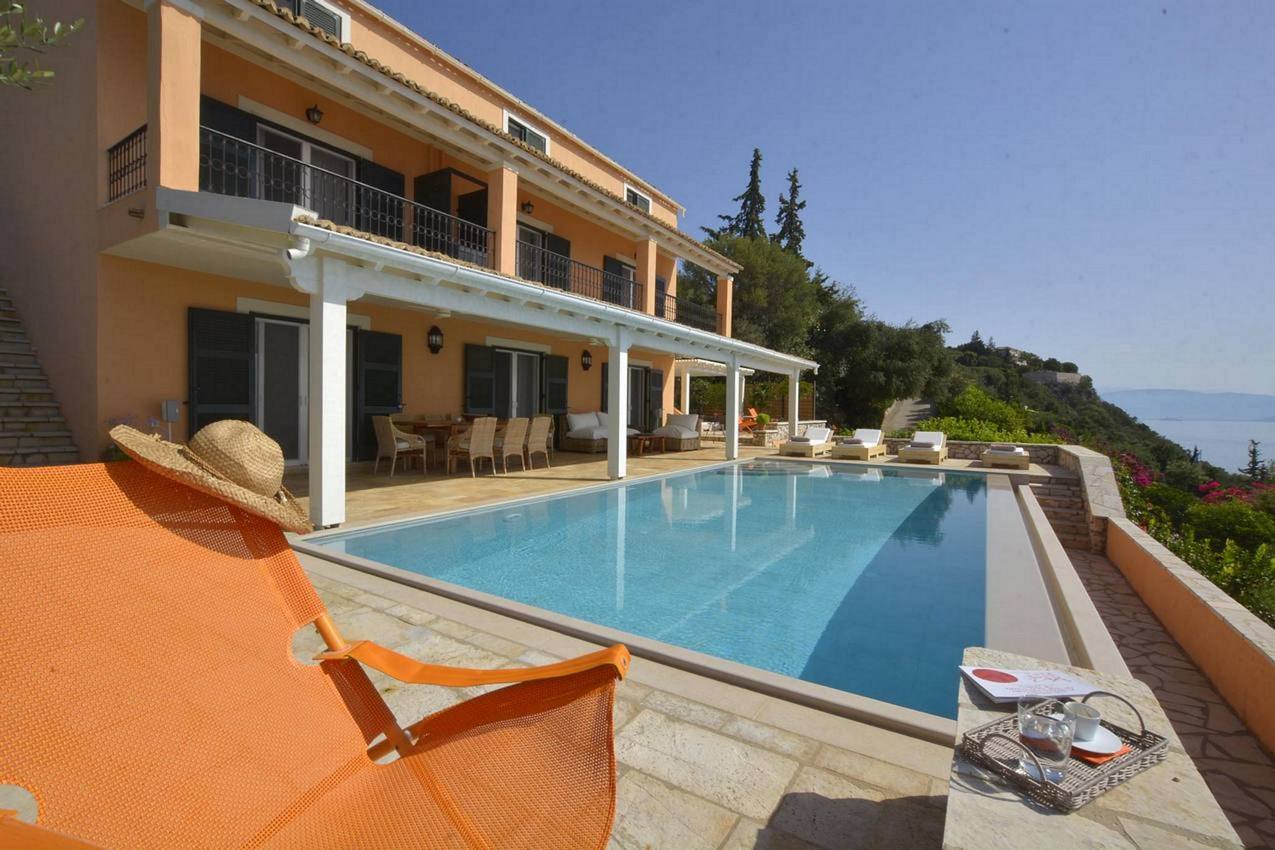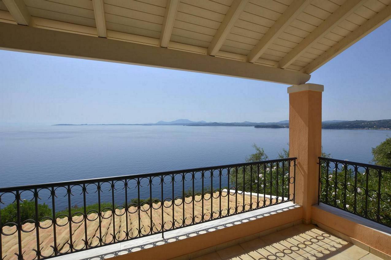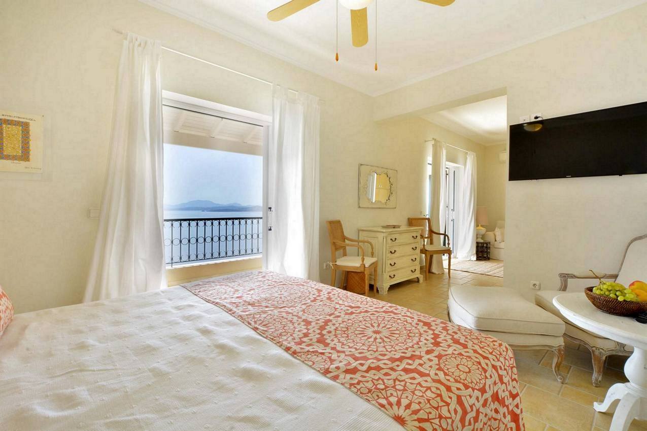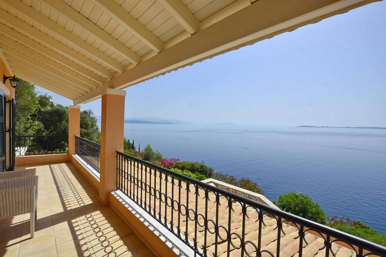 Stairs lead up to the first floor where there is a large master Bedroom with en suite bathroom featuring a bathtub with over tub shower and French Doors leading to the a private balcony. This floor also consists of a further double bedroom with en-suite bathroom and French doors leading to the balcony . A few more steps up to the second floor, where there is a large family/TV room and two bedrooms with en-suite bathrooms. The lower level of the property consists of a closed, secure parking space and a self catered guest studio. The infinity pool has been carefully positioned to enjoy the views to the maximum. There are three small and very private beaches close by that can be reached by foot. All local amenities are close by and the historical center of Corfu town is just a short drive away.