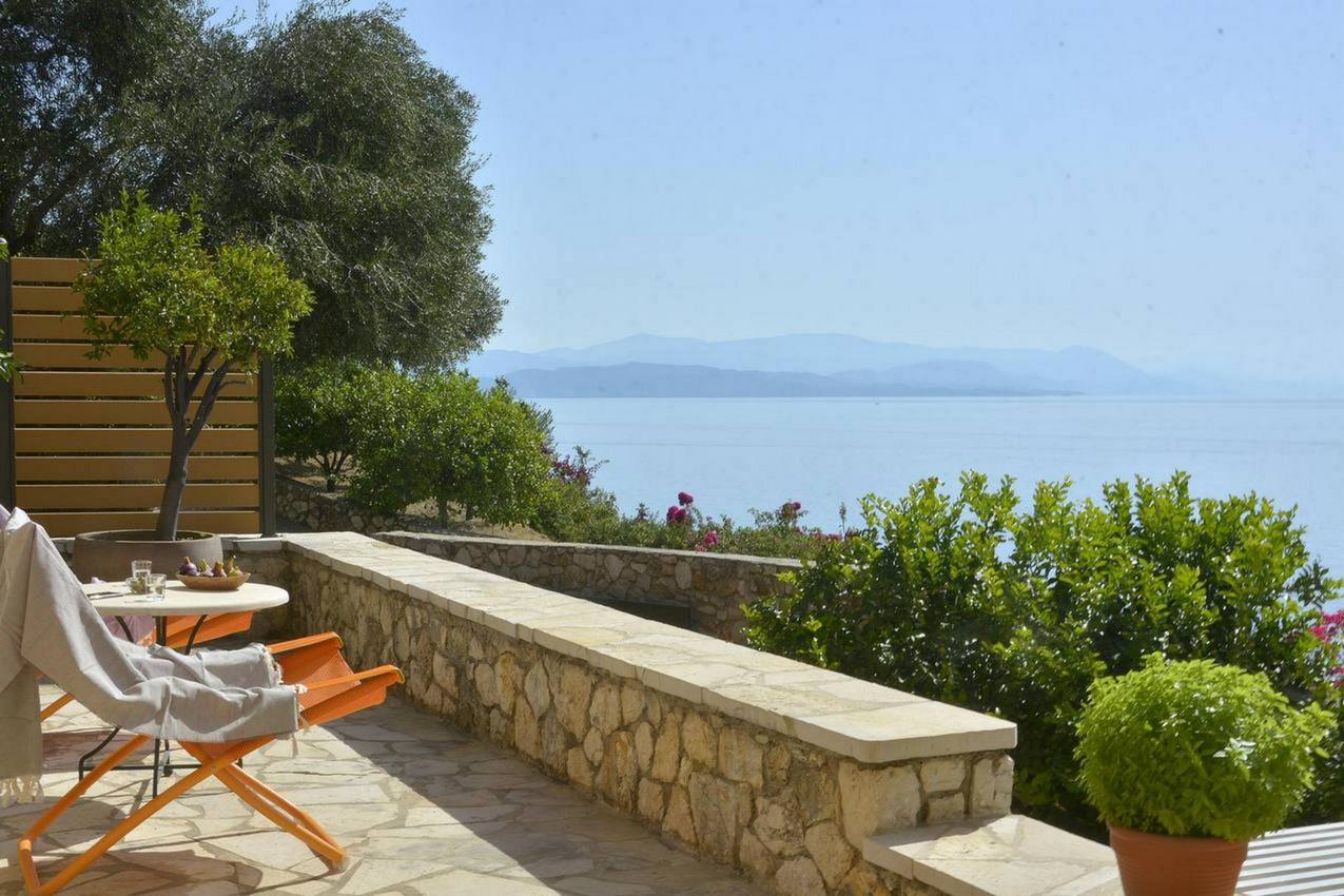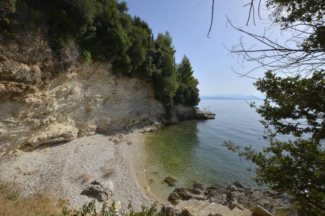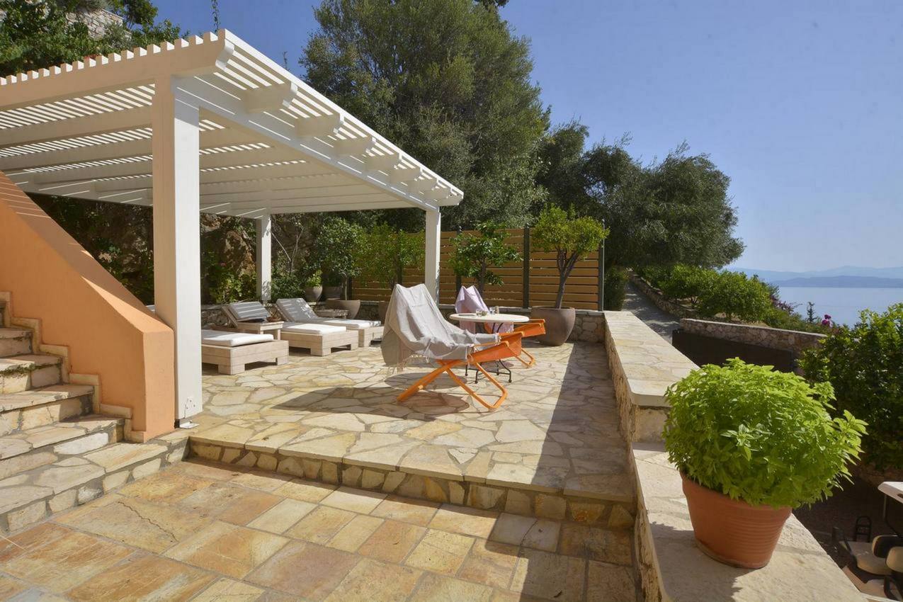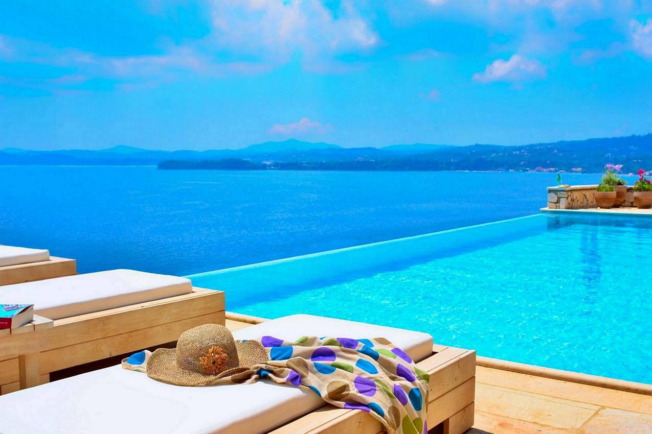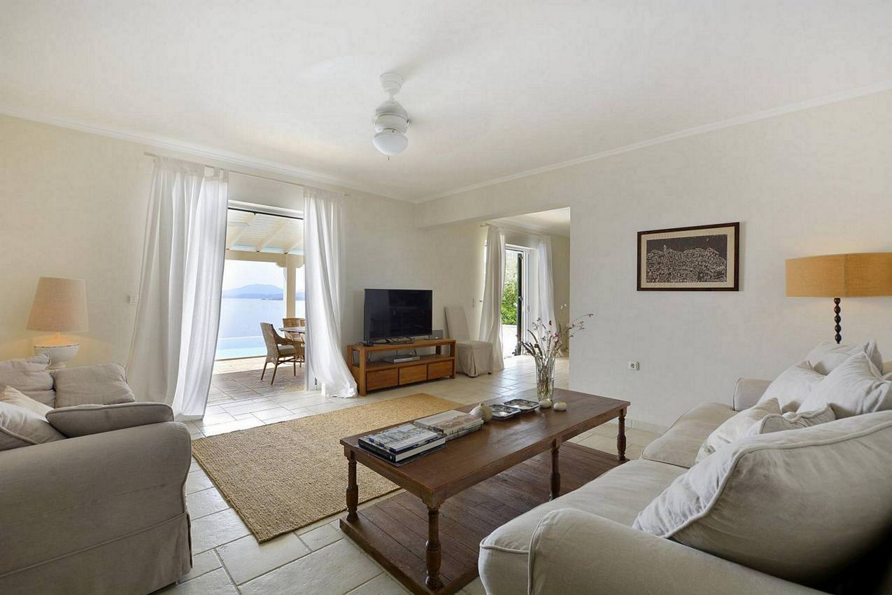 Stairs lead up to the first floor where there is a large master Bedroom with en suite bathroom featuring a bathtub with over tub shower and French Doors leading to the a private balcony. This floor also consists of a further double bedroom with en-suite bathroom and French doors leading to the balcony . A few more steps up to the second floor, where there is a large family/TV room and two bedrooms with en-suite bathrooms. The lower level of the property consists of a closed, secure parking space and a self catered guest studio. The infinity pool has been carefully positioned to enjoy the views to the maximum. There are three small and very private beaches close by that can be reached by foot. All local amenities are close by and the historical center of Corfu town is just a short drive away.
