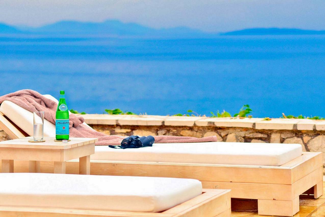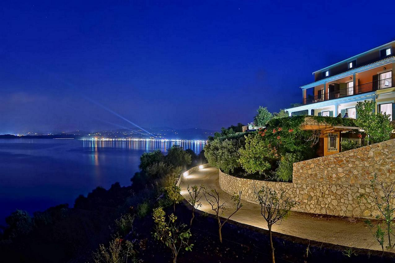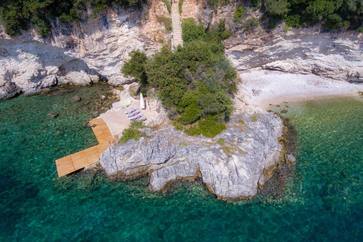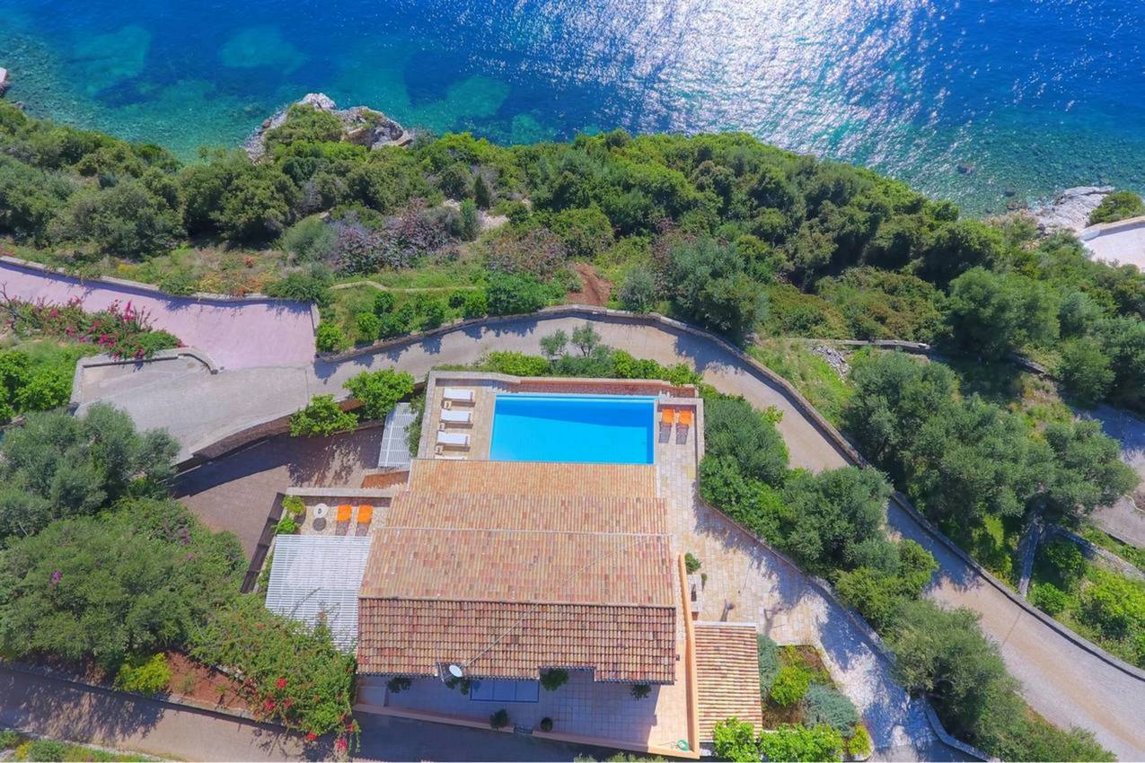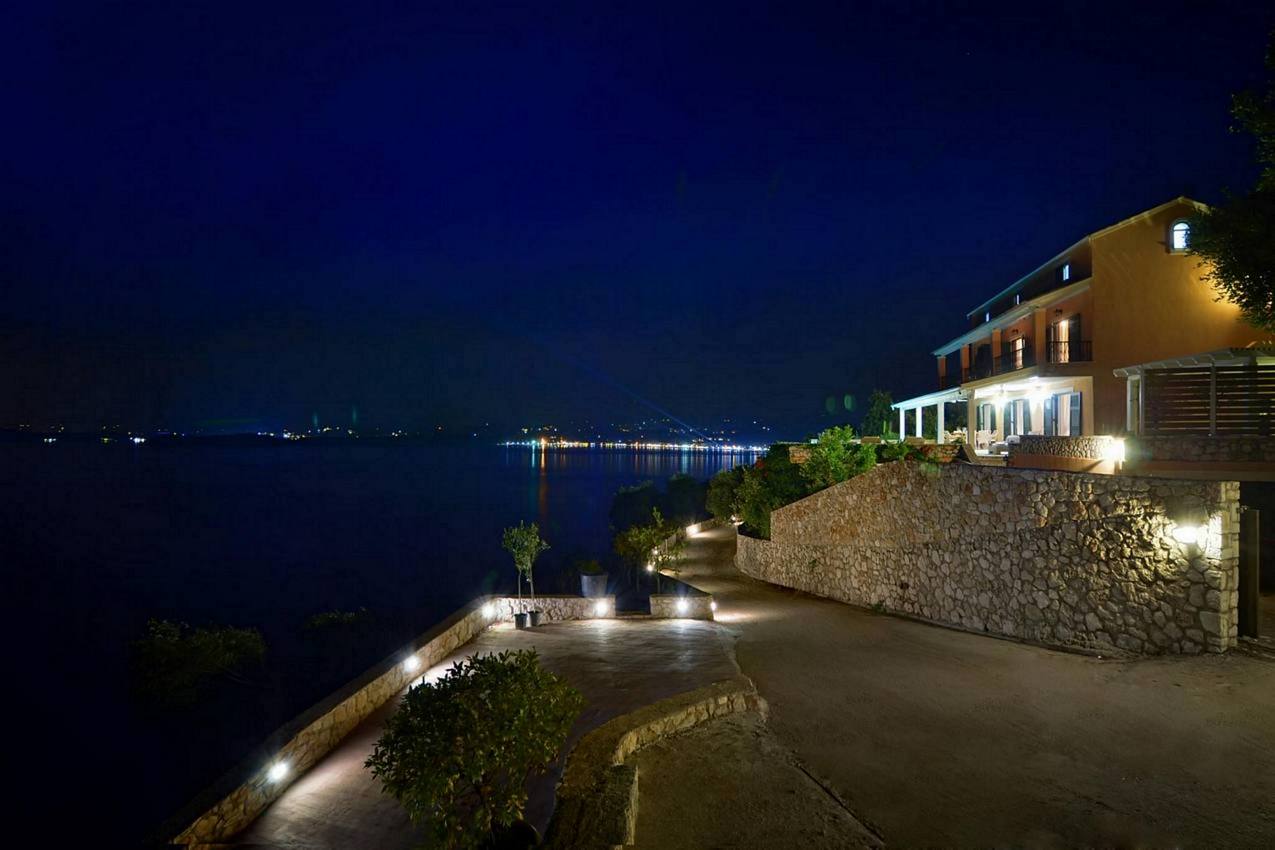 Stairs lead up to the first floor where there is a large master Bedroom with en suite bathroom featuring a bathtub with over tub shower and French Doors leading to the a private balcony. This floor also consists of a further double bedroom with en-suite bathroom and French doors leading to the balcony . A few more steps up to the second floor, where there is a large family/TV room and two bedrooms with en-suite bathrooms. The lower level of the property consists of a closed, secure parking space and a self catered guest studio. The infinity pool has been carefully positioned to enjoy the views to the maximum. There are three small and very private beaches close by that can be reached by foot. All local amenities are close by and the historical center of Corfu town is just a short drive away.