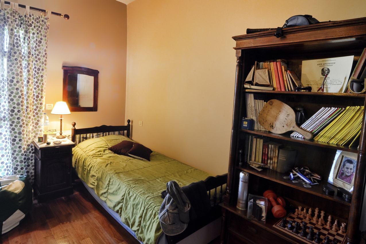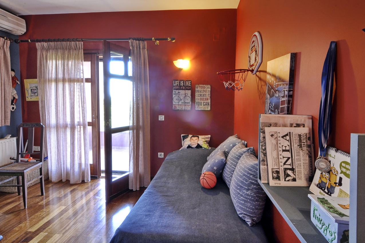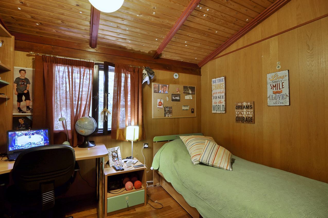 The house on the south side is arranged upon two levels, and consists of three bedrooms, two bathrooms and two sitting areas, one in the ground floor and the other one on the top floor where the master bedroom is.