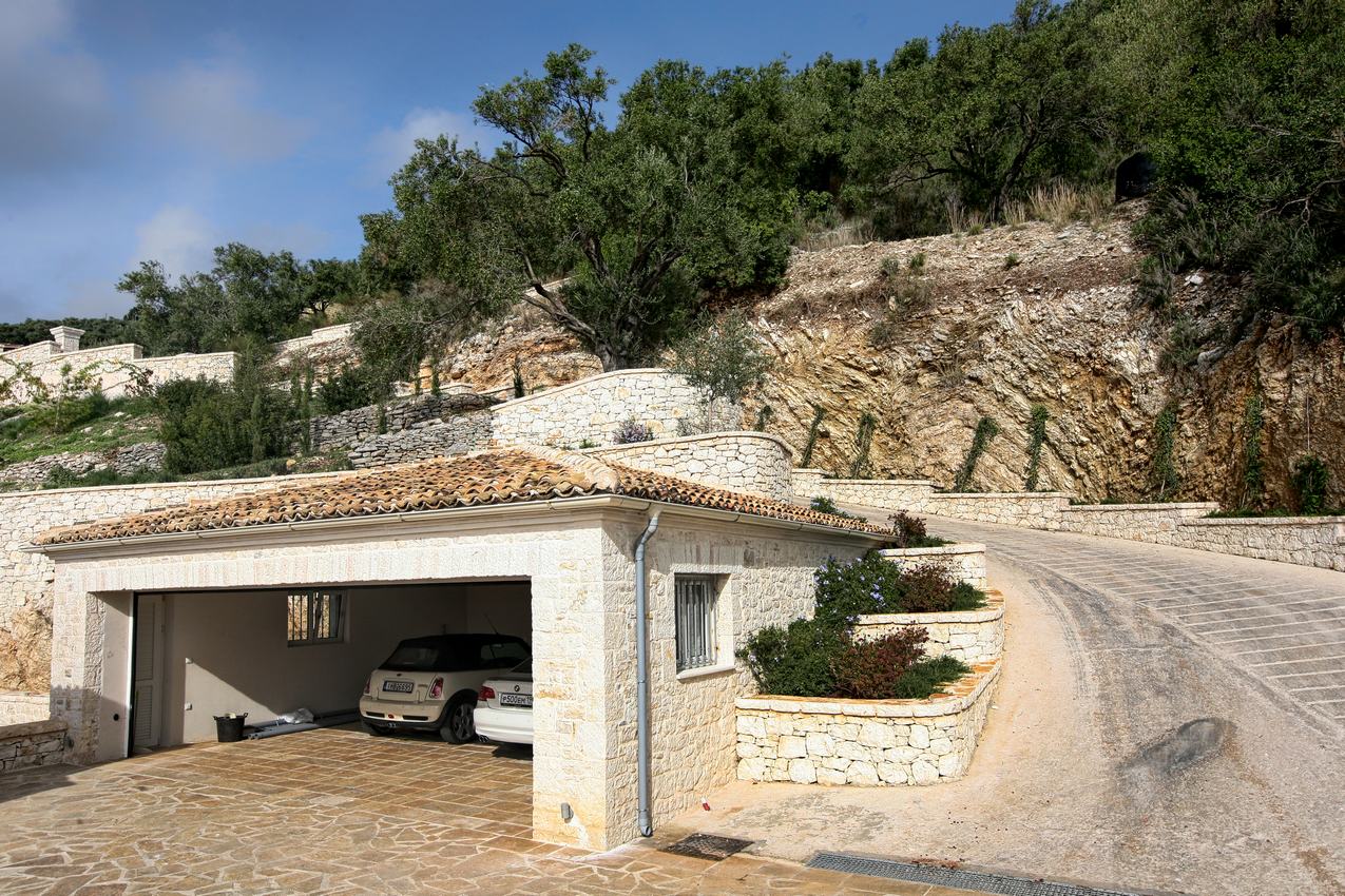 It is located just off the main road to Agni bay and has been built with local stone maintaining the traditional character. Set in a plot measuring 7100 square meters in a slopy terrain, the owners have executed an excellent landscaping with stone walls around the trees of the estate.