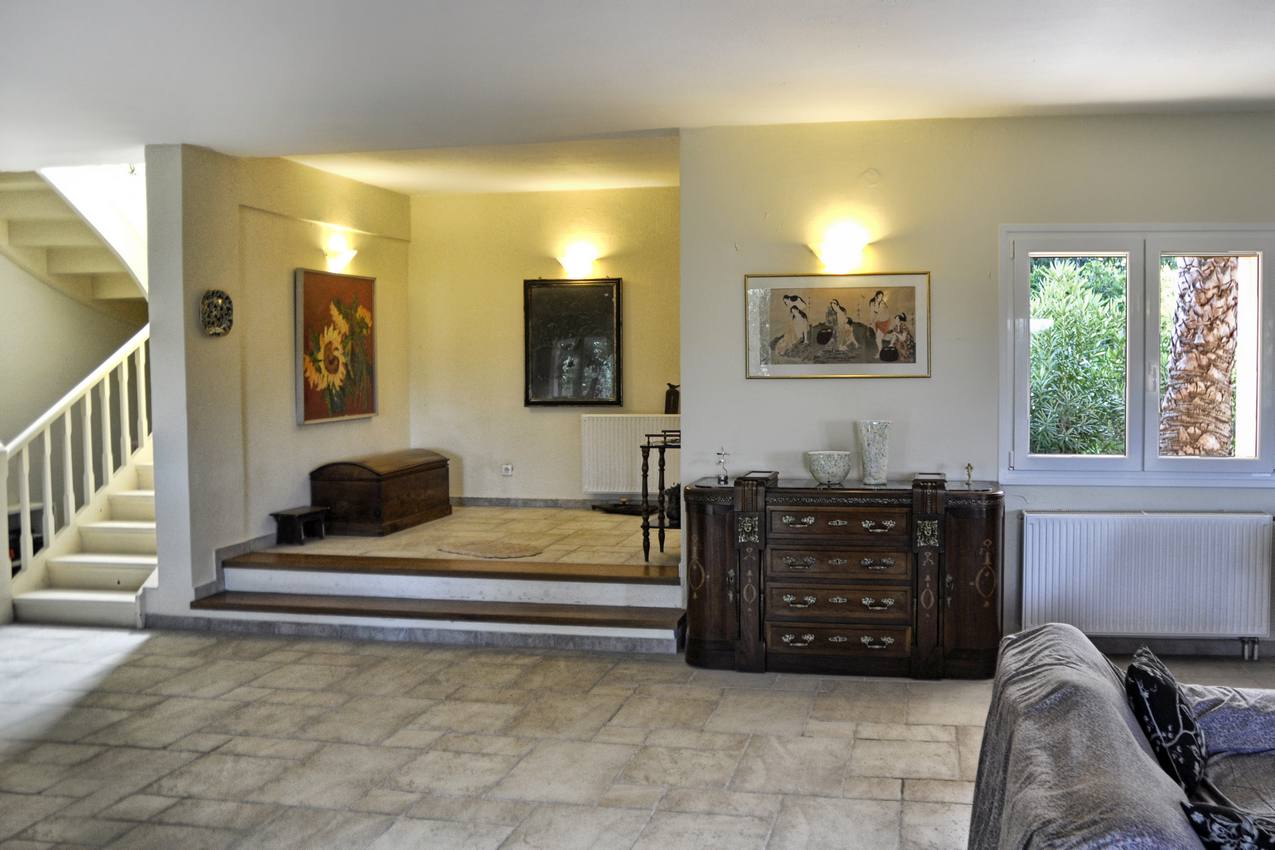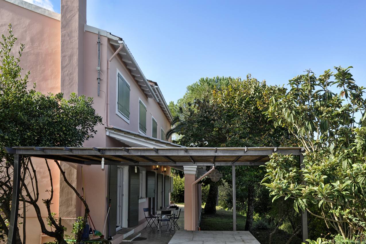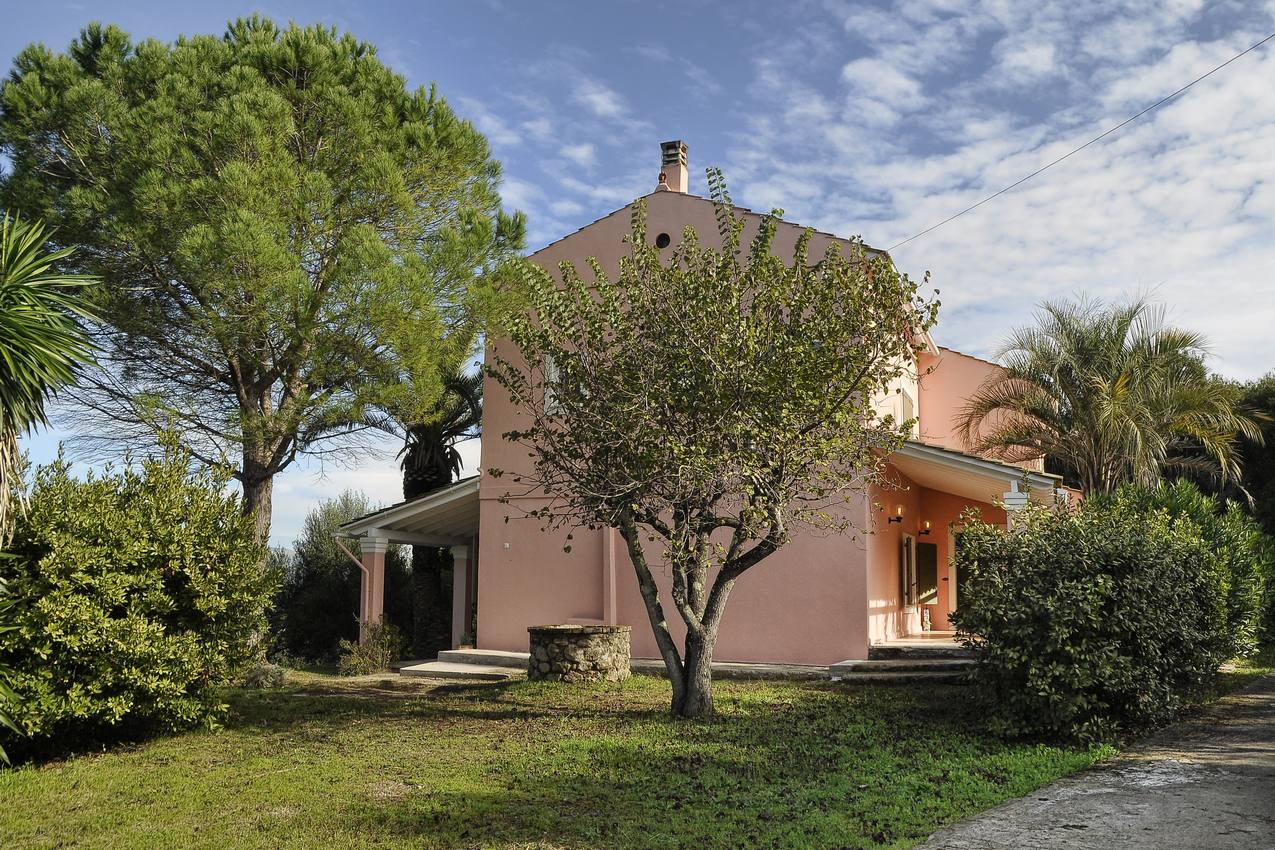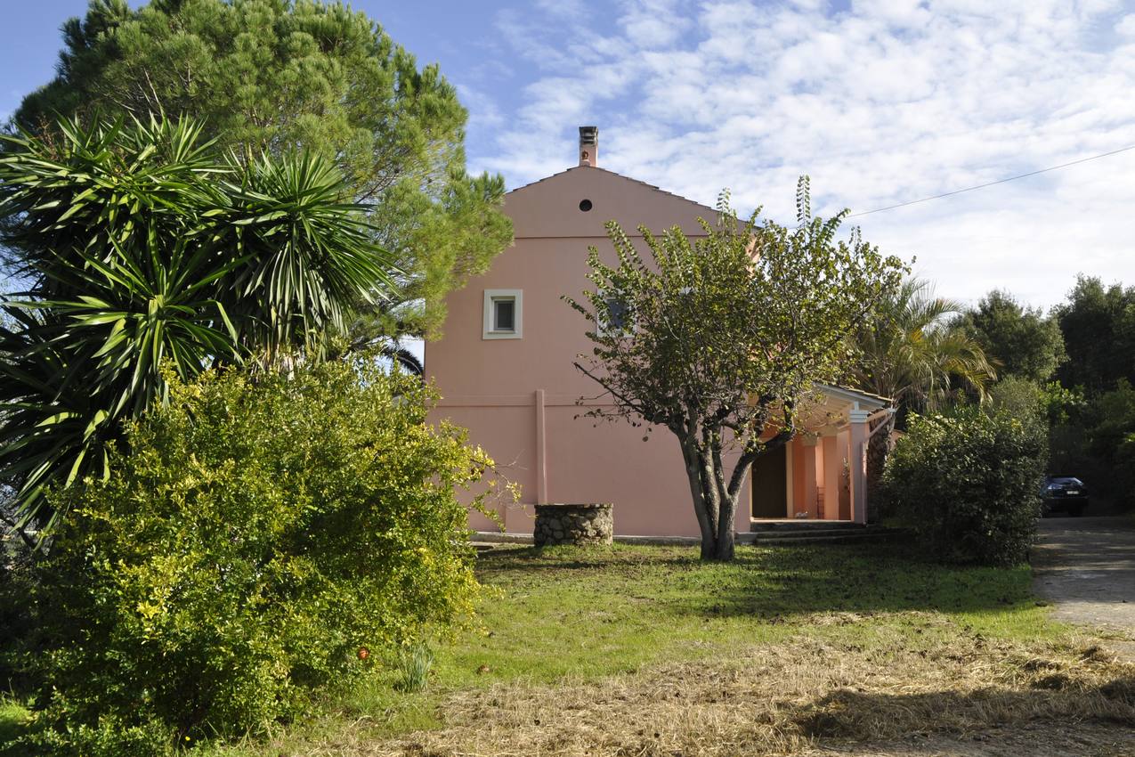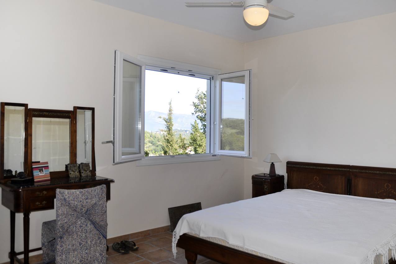 Villa for sale in Agios Ioannis, central Corfu. Located in Agios Ioannis, just a short drive from Corfu Town, the airport and nearby beaches. Set in a sought after location, the property is surrounded by 8000 square meters of terrain, with olive trees and fruit trees all immersed in the splendor of a pristine landscape. The villa is arranged on two floors and covers an area of 300 square meters. The ground floor comprises of a large open plan living room- dining room with fire place and a spacious fully equipped kitchen. Furtherin, there is a spacious guest bathroom. There are also four spacious bedrooms and a further two bathrooms. There is a large patio along the front of the house enjoying countryside views.